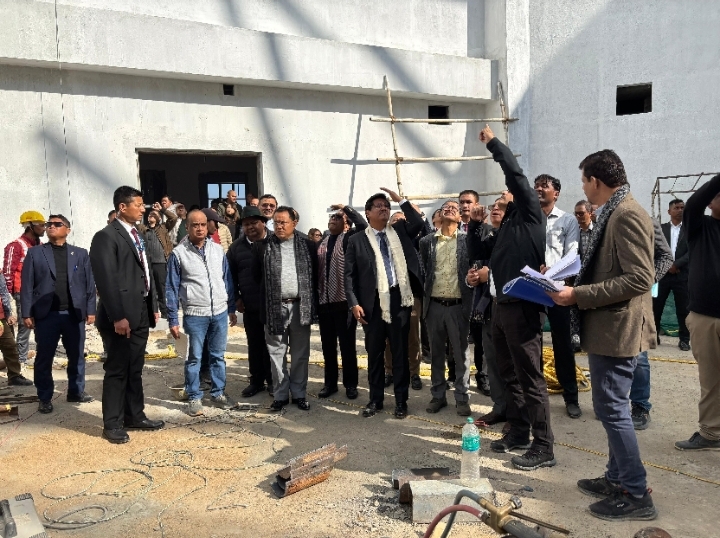Mawdiangdiang, December 4, 2024: The Hon’ble Speaker of the Meghalaya Legislative Assembly, Shri Thomas A. Sangma, today chaired a meeting of the High-Power Committee (HPC) to review the progress of the New Assembly Building construction at Mawdiangdiang.