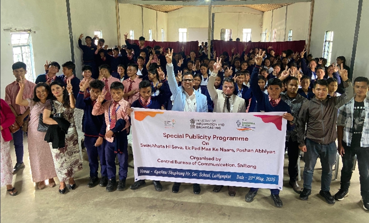 As part of its ongoing public outreach initiatives, the Central Bureau of Communication (CBC), Shillong, under the Ministry of Information & Broadcasting, Government of India, organized a special awareness programme at Kyntiew Shaphrang Higher Secondary School, Laitlyngkot yesterday. The event was conducted under the themes of Swachhata Hi Seva, Poshan Abhiyan, and Ek Ped Maa Ke Naam, with the goal of fostering environmental consciousness, nutritional health, and civic responsibility among students and the community.