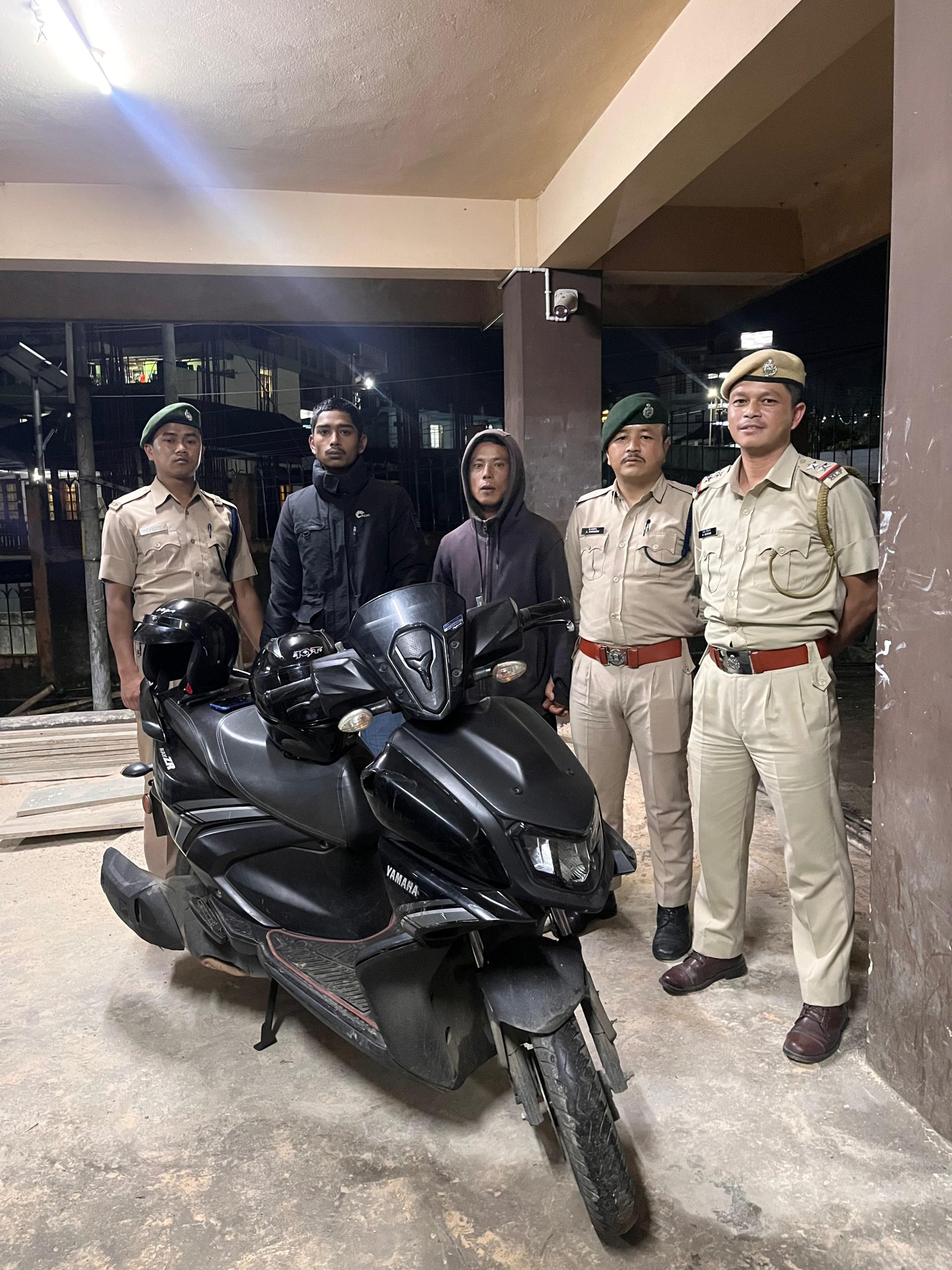 Following many complaints from pedestrians of being looted by two unidentified persons in a black scooty, a Special Team from Laitumkhrah Police station led by OC Laitumkhrah , Insp Lily Nongkhlaw along with some good Samaritans nabbed the below noted persons in the black scooty near NEC Nongrim Hills while they were trying to loot one pedestrian and stabbed him with a screwdriver from his stomach, at about 8.10pm today. The arrested persons are: