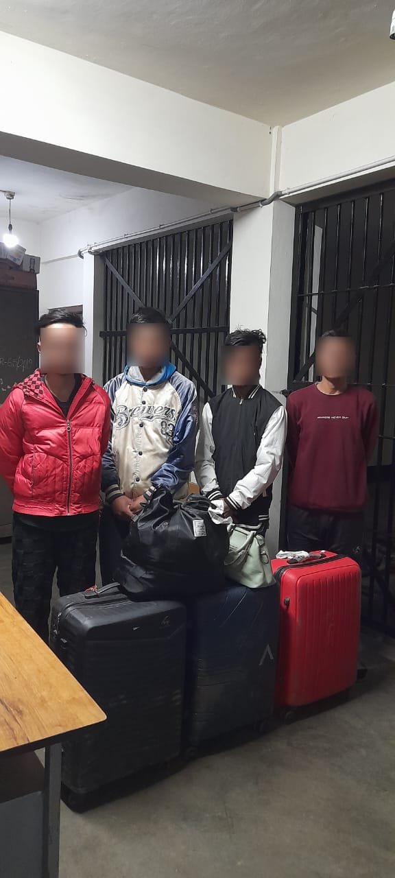 In a swift response to a reported theft, police from Madanrting Police Station apprehended four individuals on charges of breaking into a tourist vehicle and stealing valuables. The incident occurred last evening around 8 PM when Shri Jay Nand Kishore Joshi and his family, along with a newlywed couple from Mumbai, parked their Toyota Innova near the Mahindra Showroom at Mawblei and went to dine at “By the Way” restaurant.