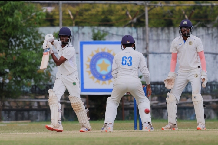 Resuming this morning on 18/0, Meghalaya lost Avinash Rai (8) off the third ball of the day and wicketkeeper Dipankar Baruah (2) followed soon after. Sachin Kumar (31 from 103 balls, 4x4s) and Kevin Christopher (32 from 181, 3x4s) were determined to occupy the crease for as long as possible and each did their part.