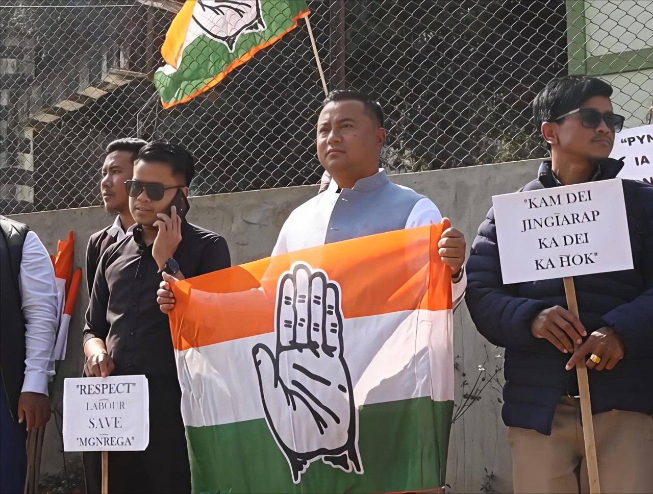 The protest was led by RBDCC President Bah Rocky Marweiñ, along with party members, who took to the streets holding placards demanding that the original name and structure of MGNREGA be retained. The demonstration was organised at the Indoor Stadium, Umlyngkdait.